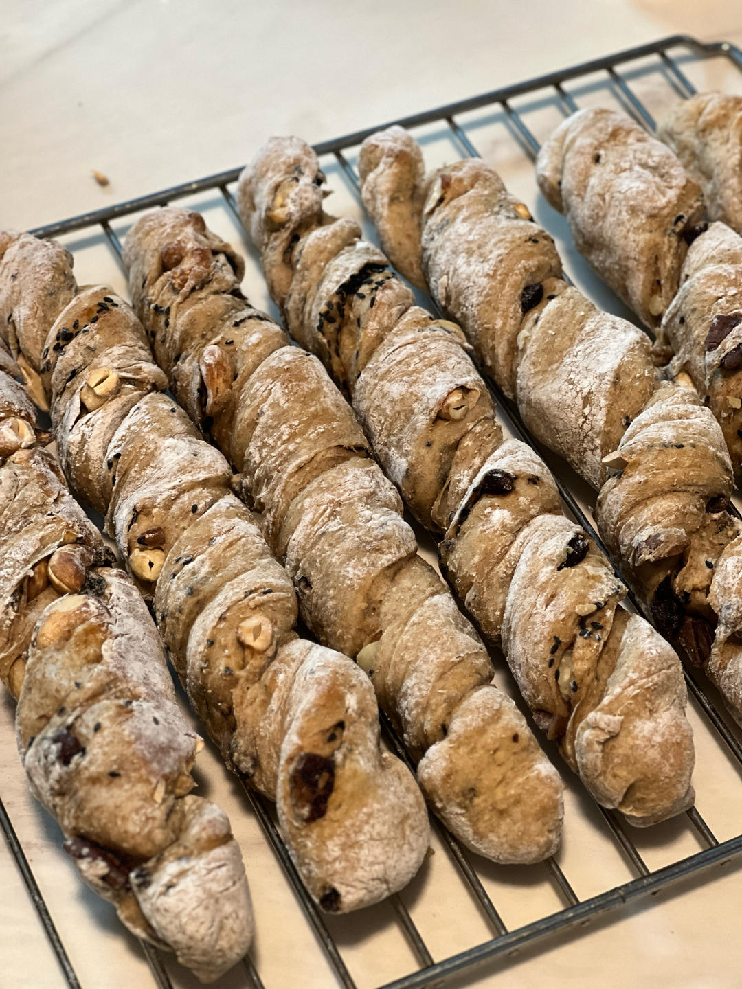坚果随意撒的料多到噗出来!全麦粉代替黑麦粉,蜂蜜一不小心多放了10g,也不甜!外壳不硬,内里是松软的!总之这个配置很难不...