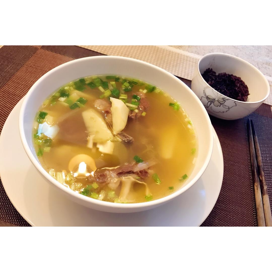 汤泡饭,牛骨笋汤+三米饭(大米、紫米、糯米)