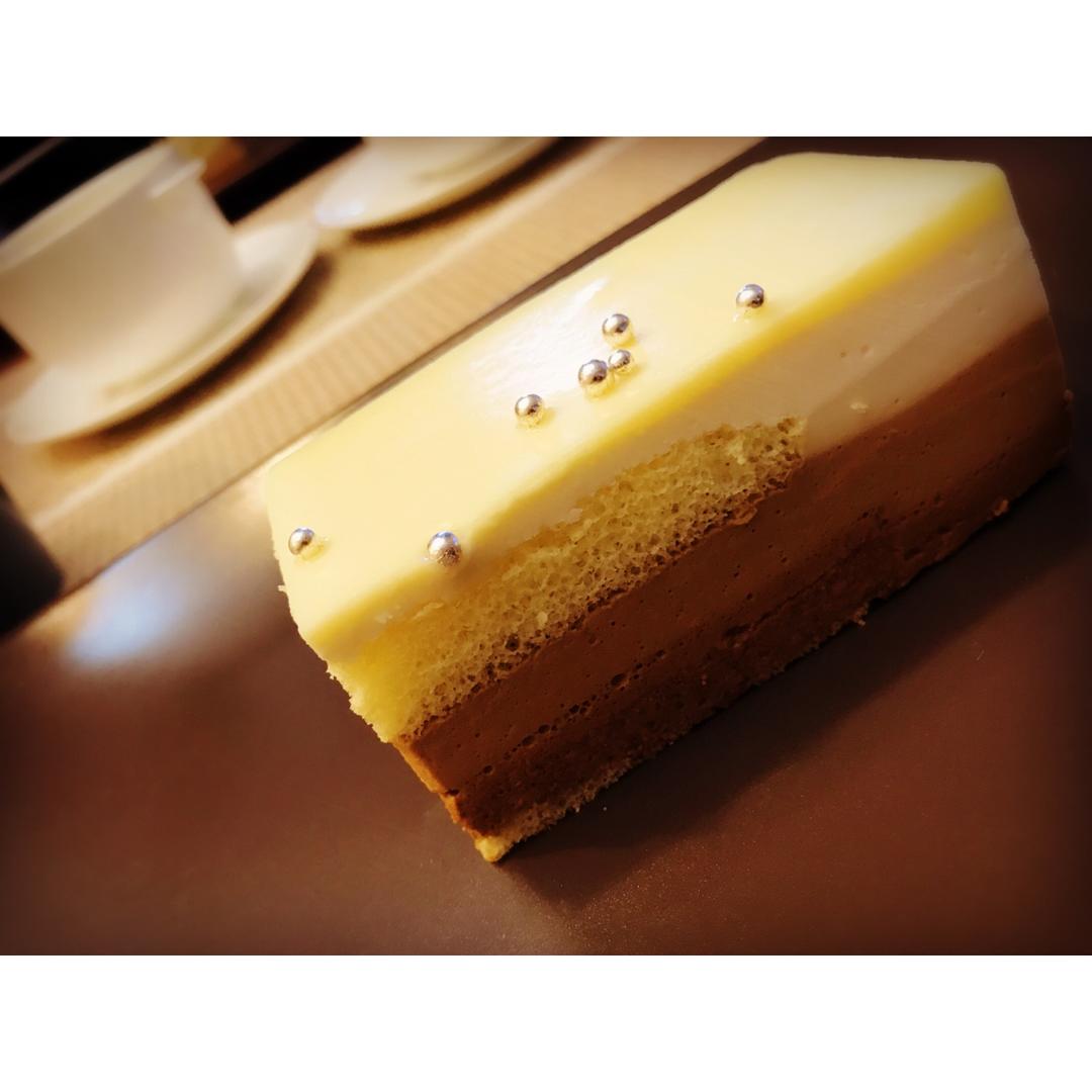 渐变咖啡慕斯配马斯卡彭冻芝士,白巧克力淋面蛋糕,名字有点儿长,本人觉得这款蛋糕太有气质了,用“优雅”形容它太合适不过了,...