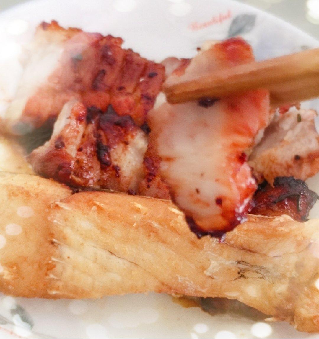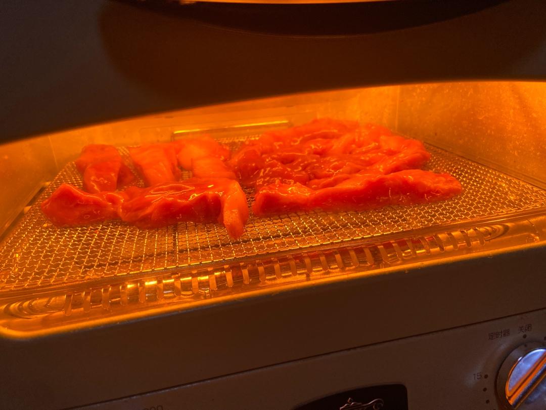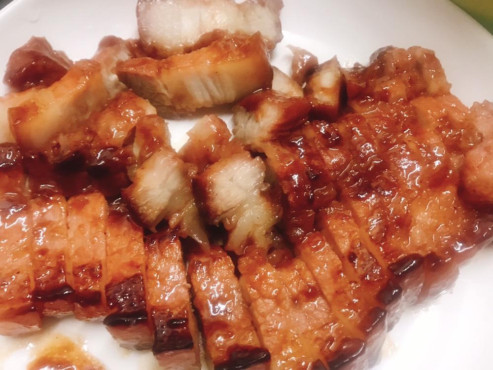 超市买的梅花肉,600多克,叉烧酱增加到70克,一点点盐,冰箱腌味3小时,最后感觉有点咸了。千石不需加热,抹...