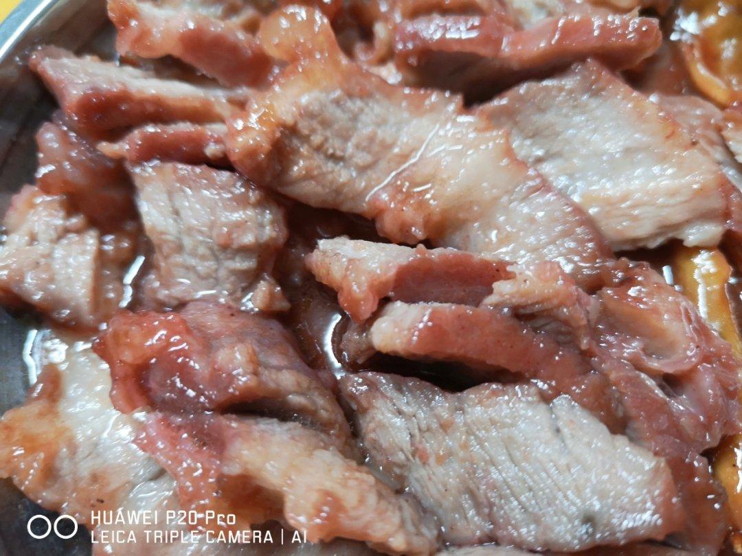只放了家中现有的材料:李锦记叉烧酱+牦油+海天黄豆酱+味极鲜+葱姜,好吃!