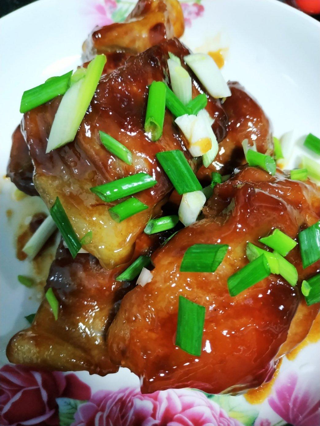 今次用电饭煲煮,1.5匙叉烧酱1匙酱油1小匙糖,儿子说好吃!