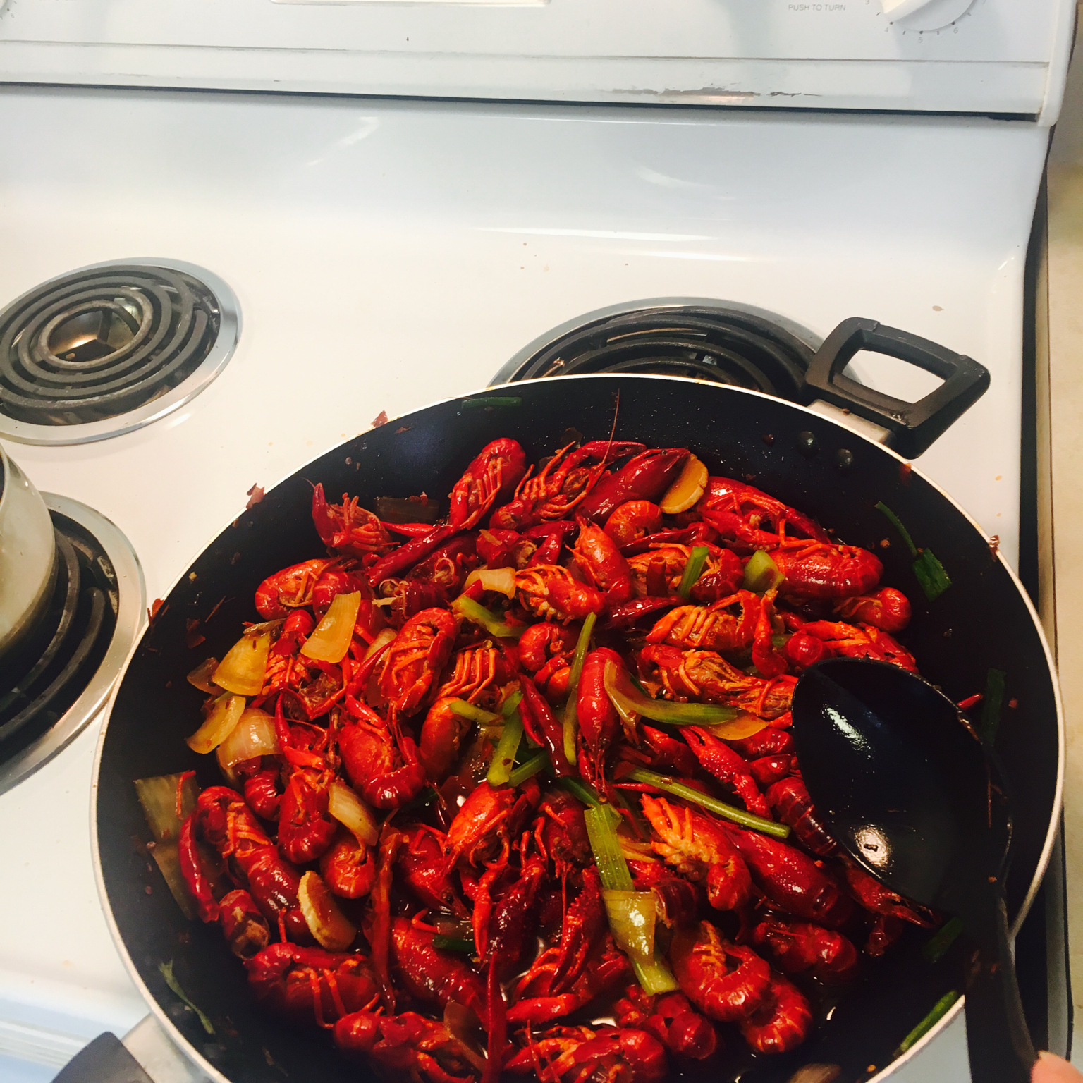 人在美国 看了看虾真挺干净的就去了虾线没切头 做出来好吃 两个人干掉了整整一盆~