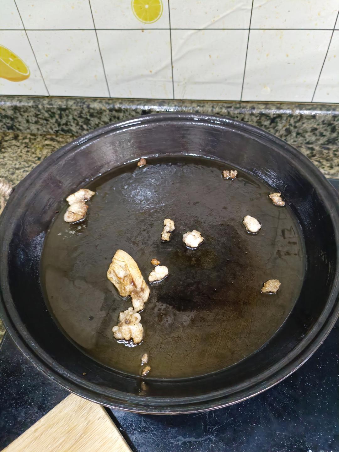 生铁平底锅,涮了一下水,没加油,没热锅就放冷冻云吞,没起焦就放水煮,发现会粘锅。于是,加了少...