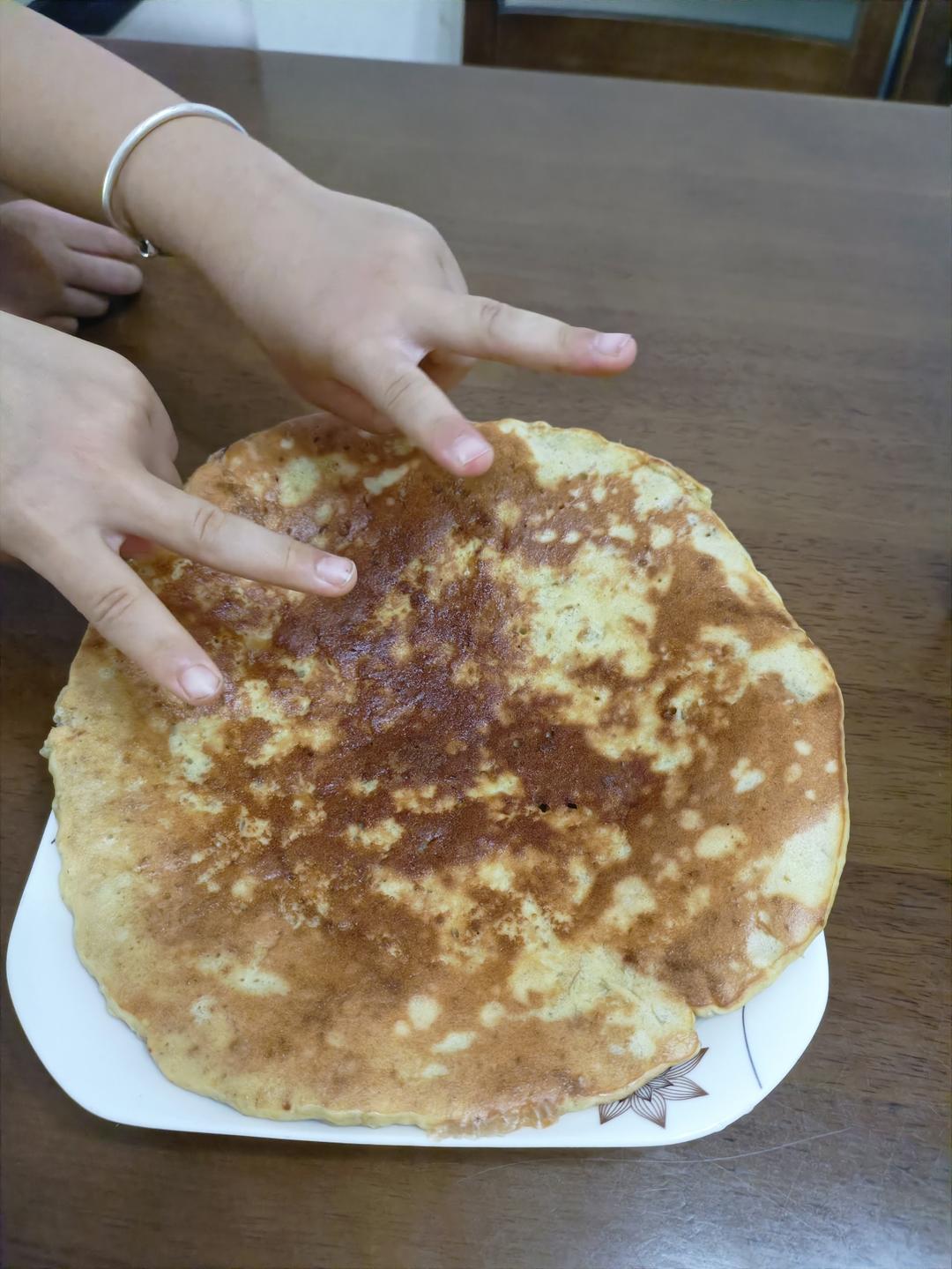磨合中……主要要控制火候🔥。必须小火,可能一次摊一个居中不太大的饼,这样...
