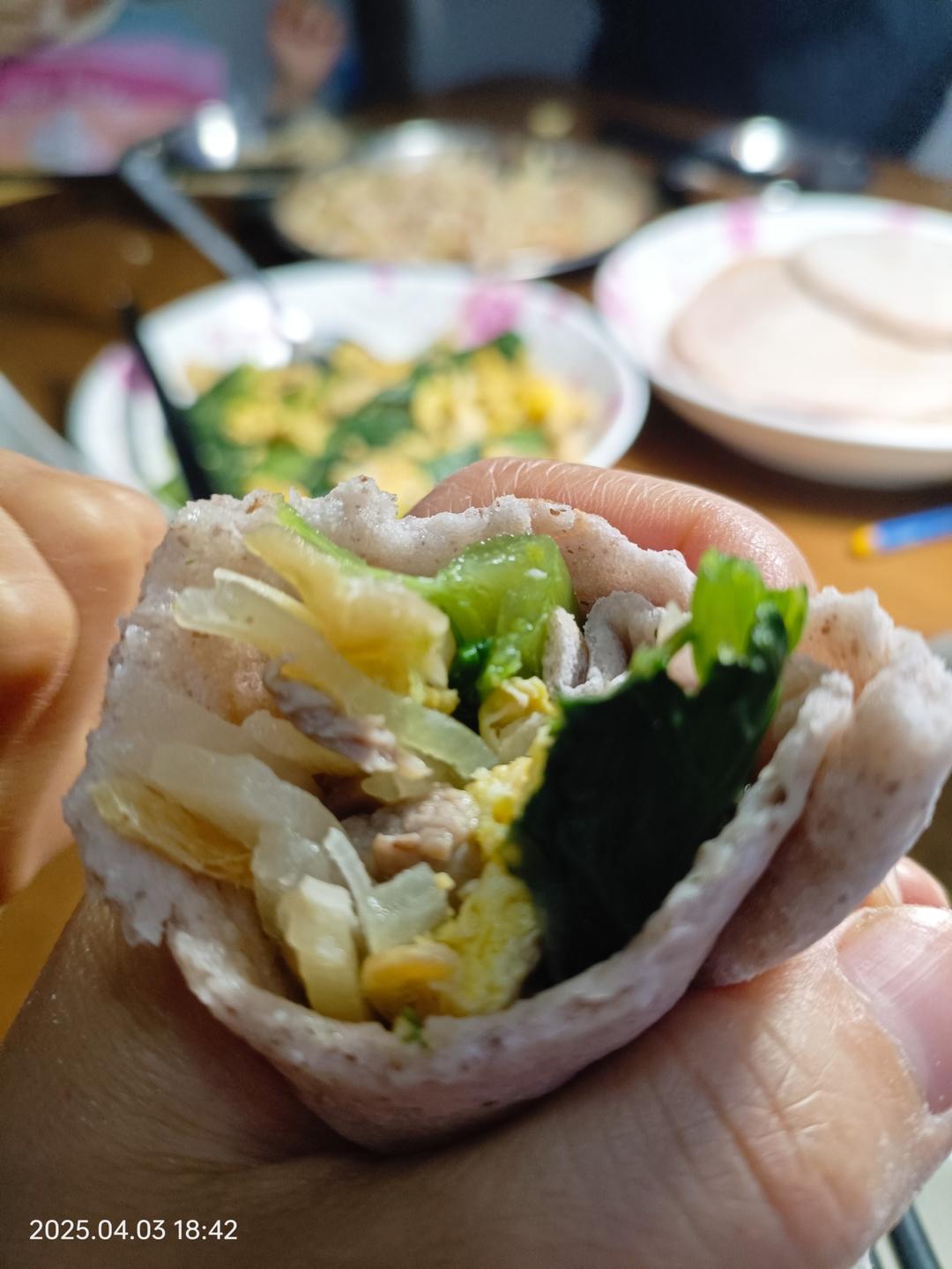 卷饼,万物皆可卷!我预料到小孩会吃很多,所以配了五星汤助消化!果然,每人4个,这可是50克一个面团的呀!比...