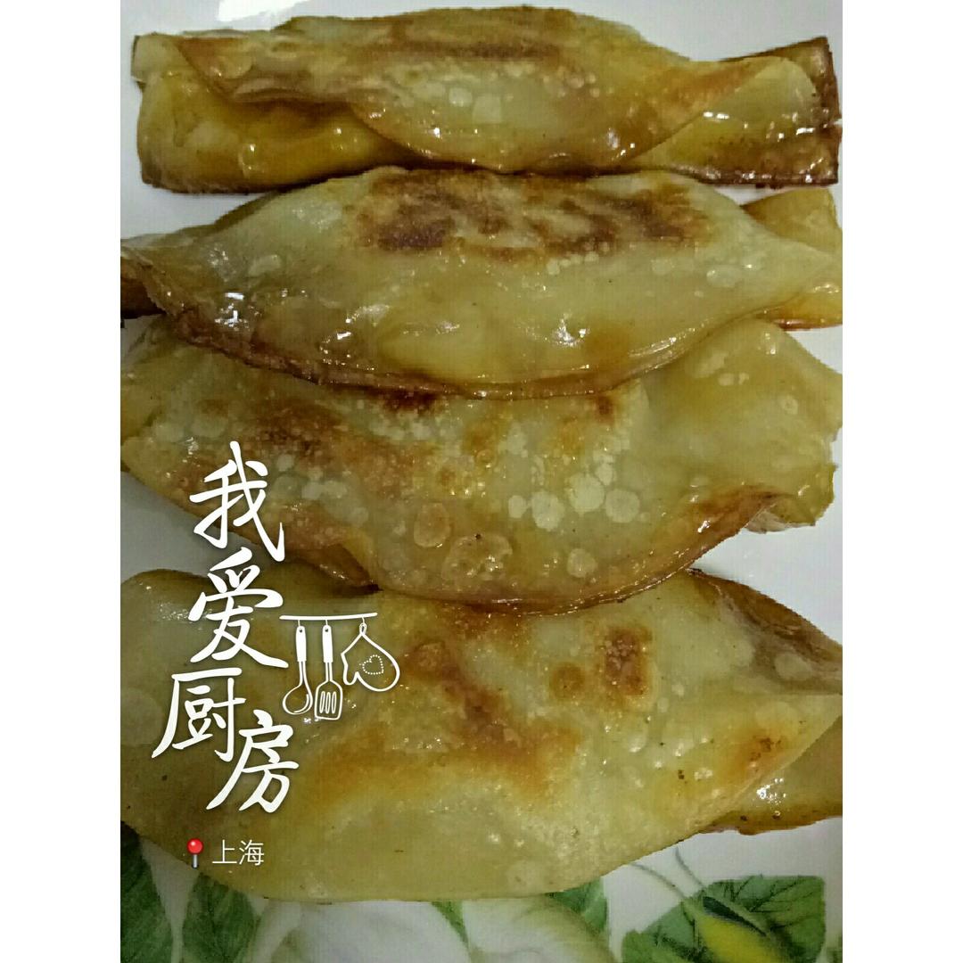白菜猪肉馅,表面酥黄口感劲道,自己亲手做,卫生加健康,煎锅里吱吱声,诱人垂涎,好好吃哒。。