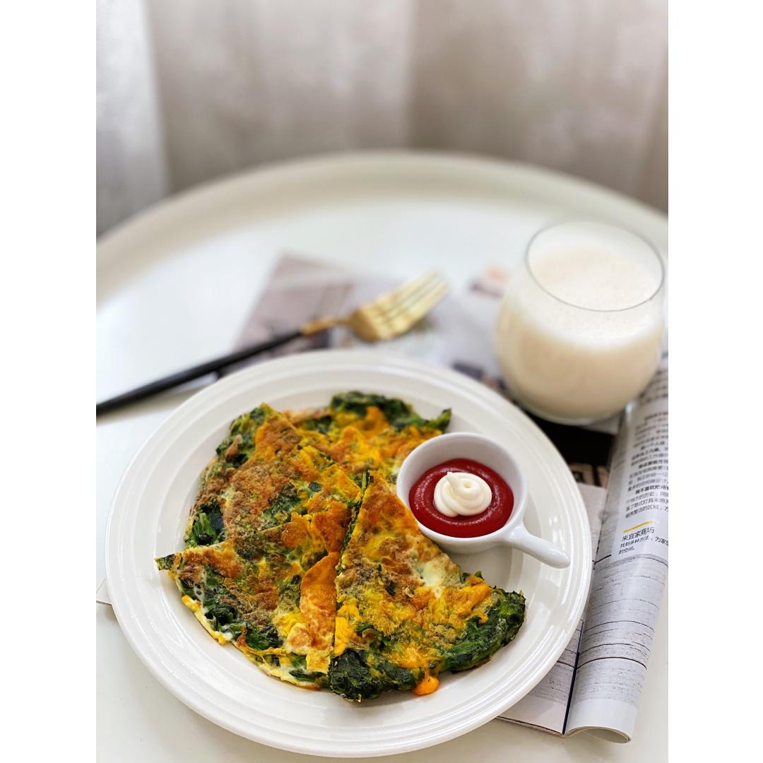 是日早餐:菠菜饼+番茄酱美乃滋+低脂牛奶