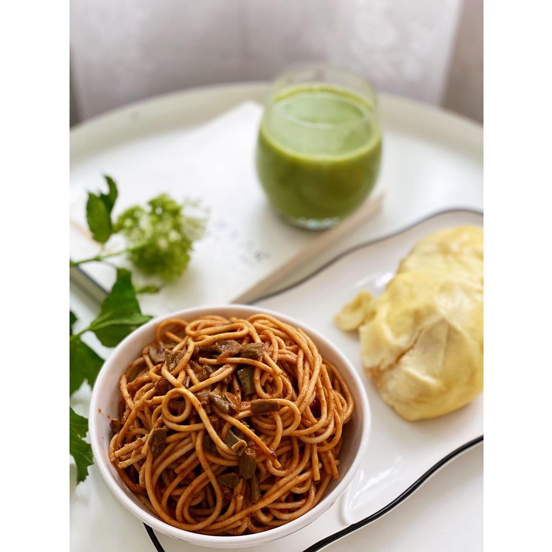 是日早餐:原味手抓饼+煎荷包蛋+培根毛豆+薏米青柠水