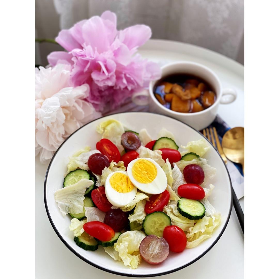 是日早餐:蔬果沙拉+番薯姜汁糖水