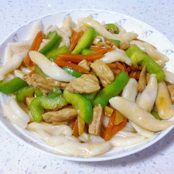 杏鲍菇条、肉条、胡萝卜条、青椒条