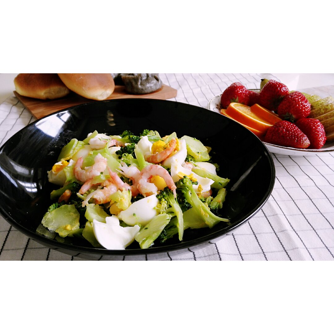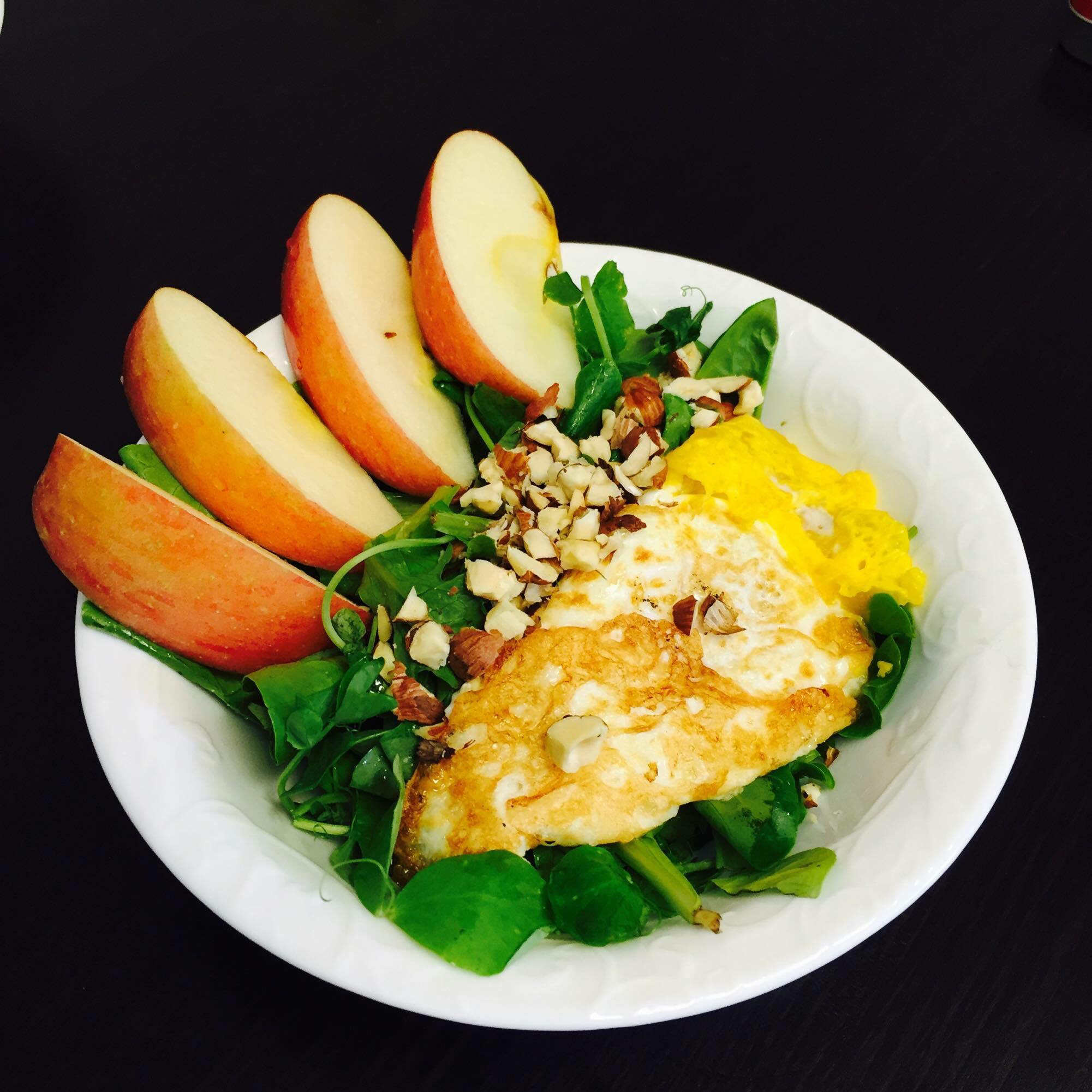 营养早餐!半个苹果,沙拉+煎蛋+碎榛果仁