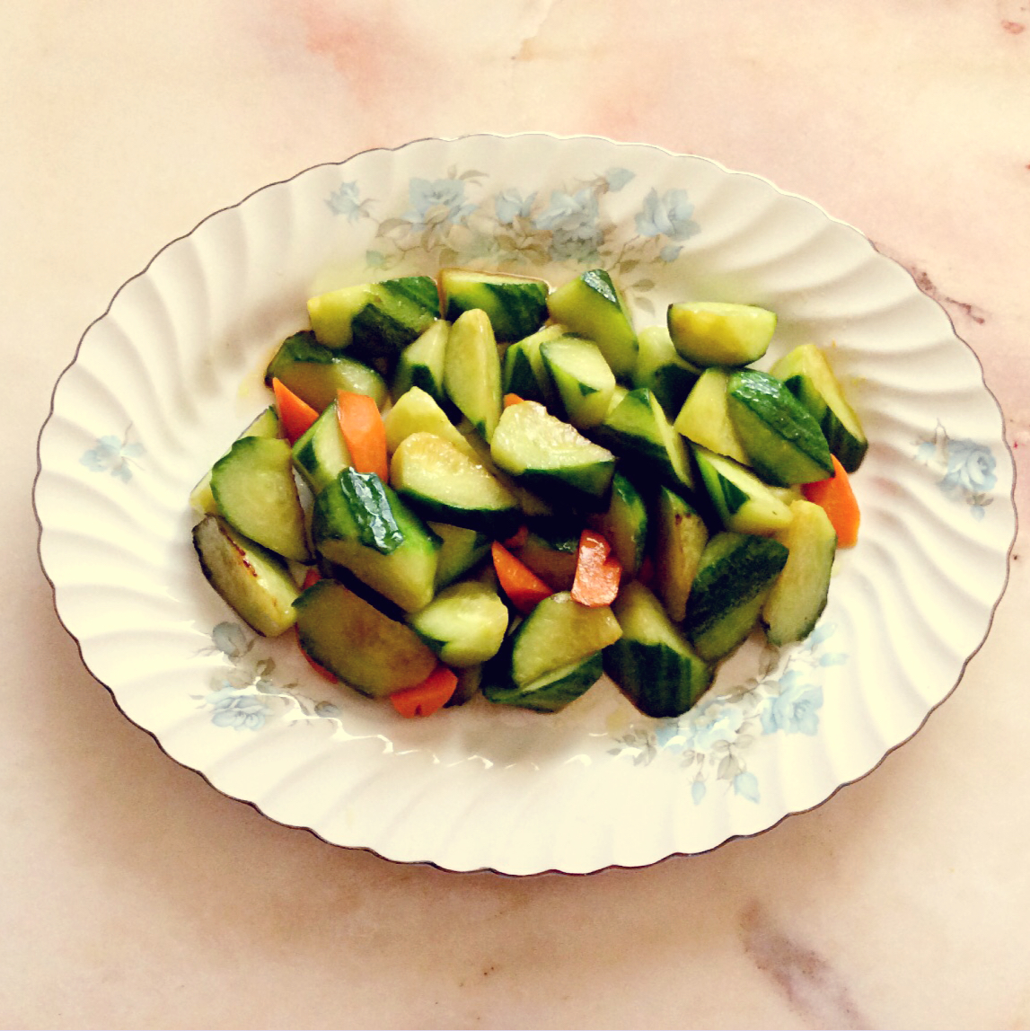 素炒黄瓜:黄瓜我喜欢生吃,可有人喜欢吃熟的,只好放锅里扒拉几下,刚断生。其实这样也挺好吃的。 #午餐•2016年4月21...