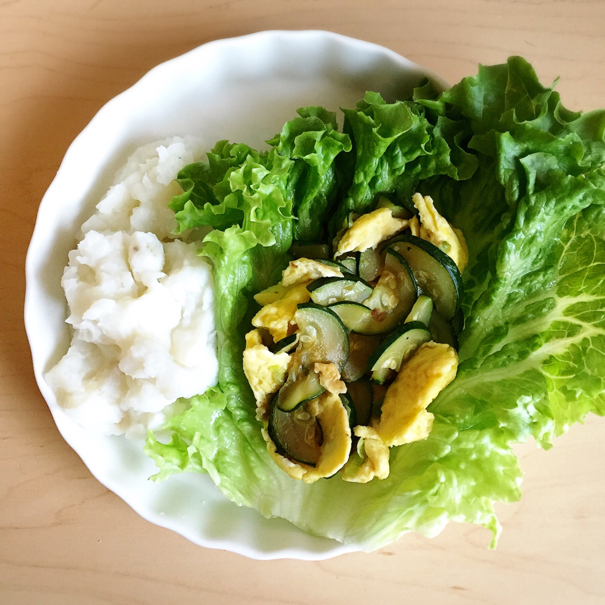 机智的我把炒菜包在生菜里吃了 脆脆哒 还有甜甜的山药泥