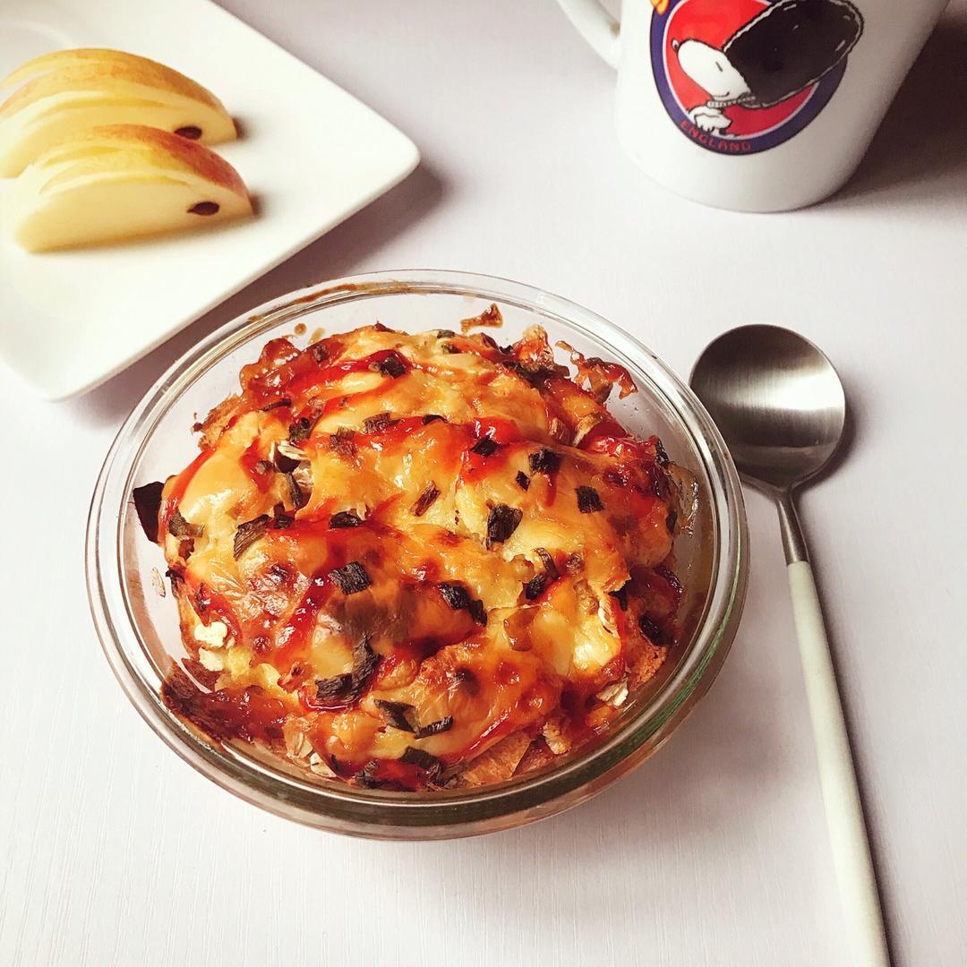 咸的也好吃,稍微过了点,但也没事。和葱香面包一样,挤了沙拉酱番茄酱,洒了葱花,炒鸡香!∠( ᐛ 」∠)_ #早餐•201...