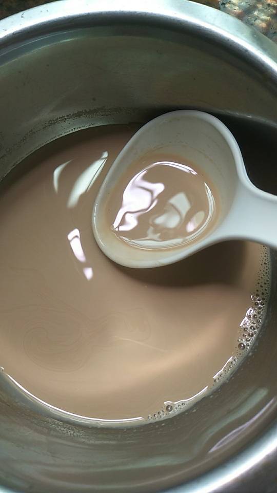 我的用量大概15g糖,入锅,小火加入500ml奶,两包立顿红茶。熬一定时间尝了一下,纯奶有点腻,然后加了100ml开水。...