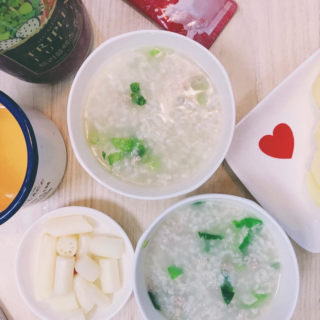 #青菜瘦肉粥#