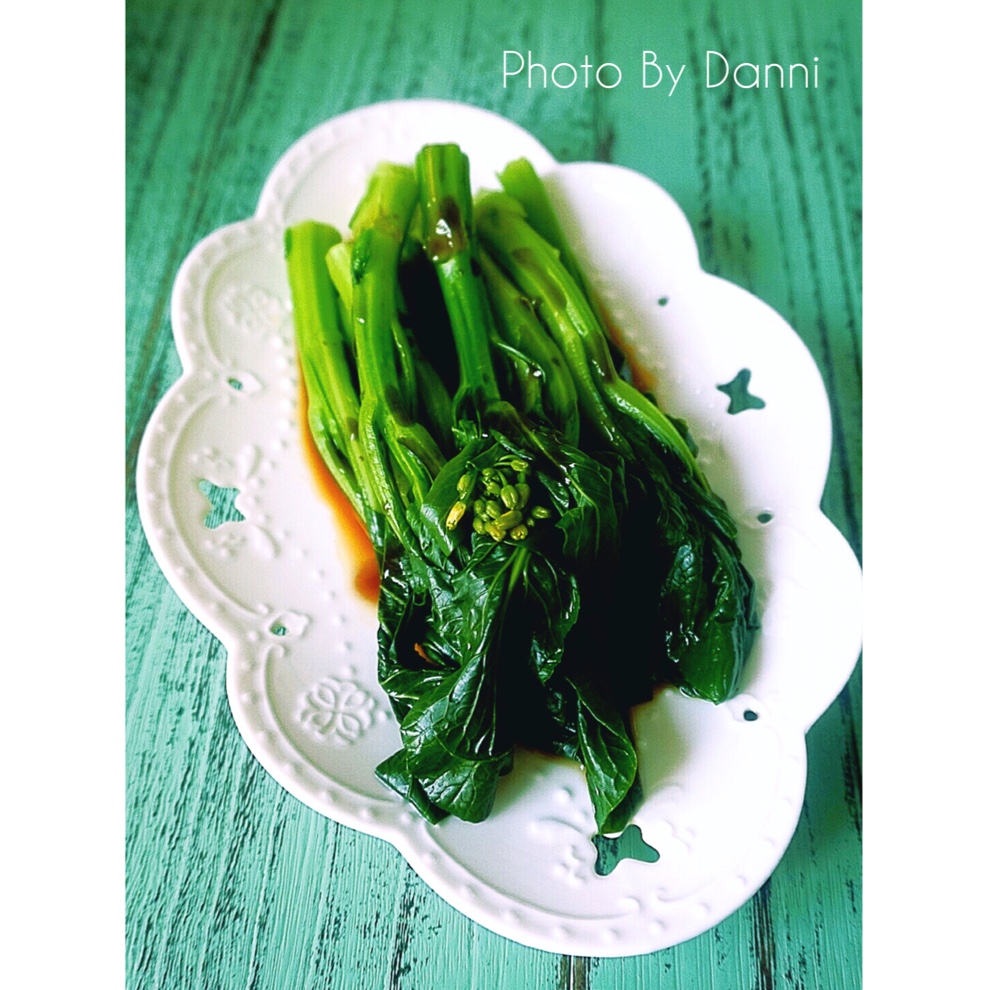 两种草 都水煮完 摆盘 淋上生抽 一点点黑麻油和蚝油 好喜欢😋...