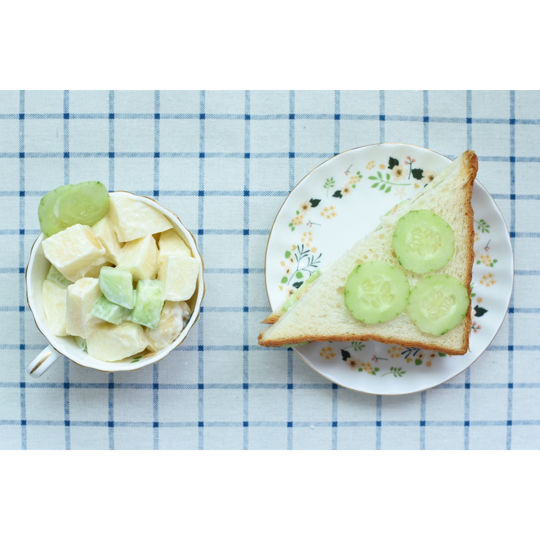 更正一下,是火腿三明治。用料很简单:土司、沙拉酱、火腿片