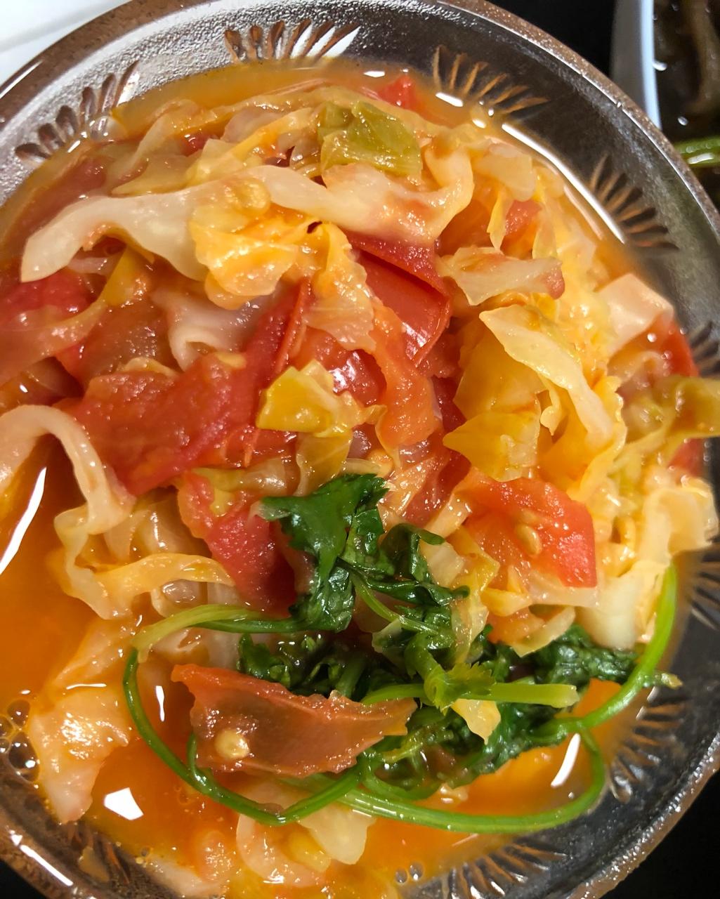 用了6个西红柿 全程没有加水 完全靠西红柿和圆白菜的蔬菜汁炖成浓汤 喝完觉得全天的维C和纤维素都补满了 #晚餐•2018...