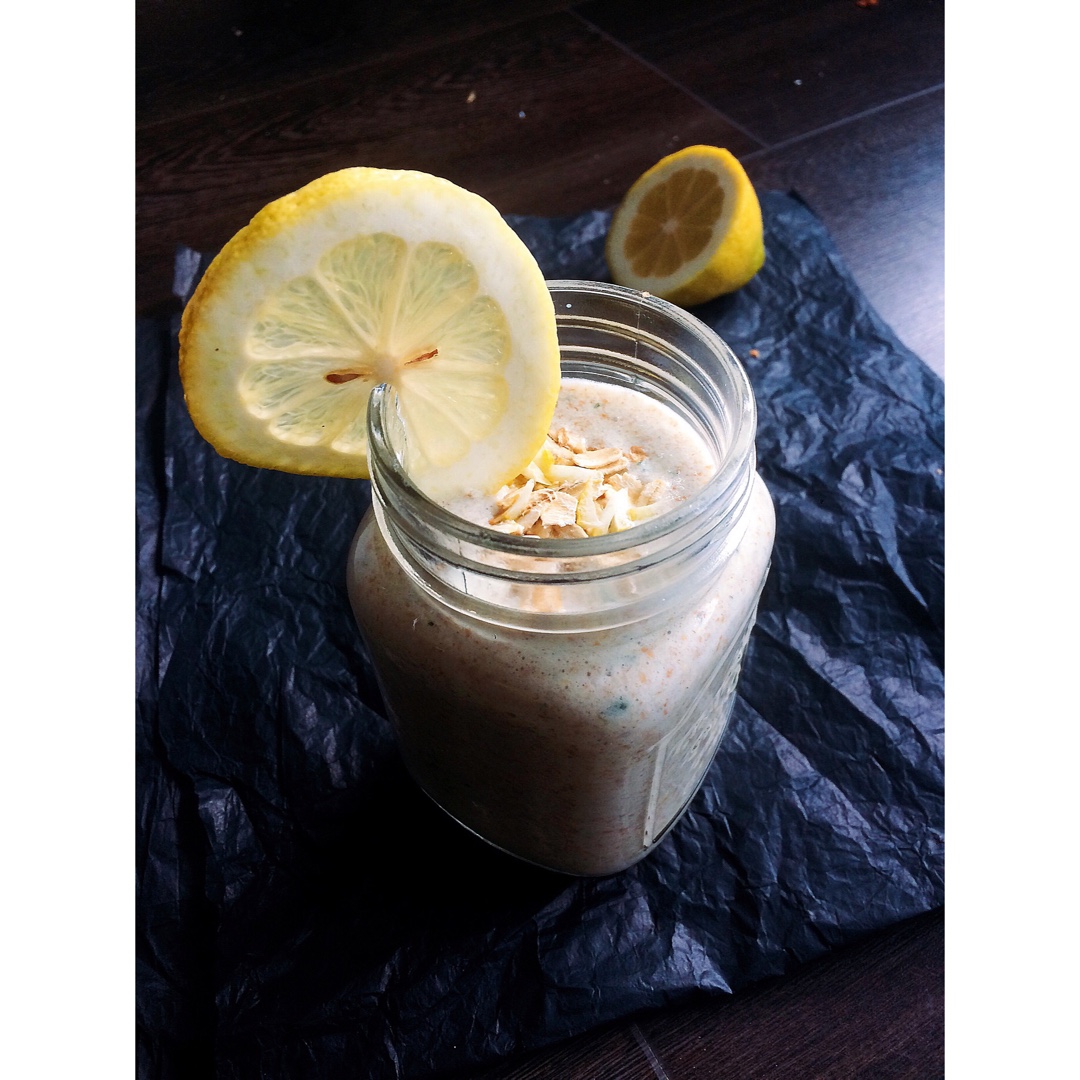早餐变懒实录。半个柠檬+一块黄瓜+燕麦+麦麸+牛奶。