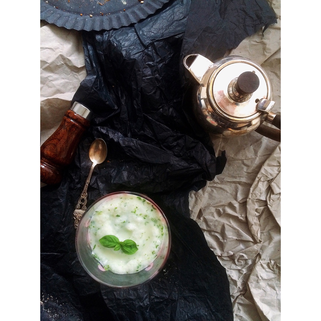 冻成块的酸奶加一把罗勒叶的sorbet。木柄小壶 调料罐和小勺终于成功出镜