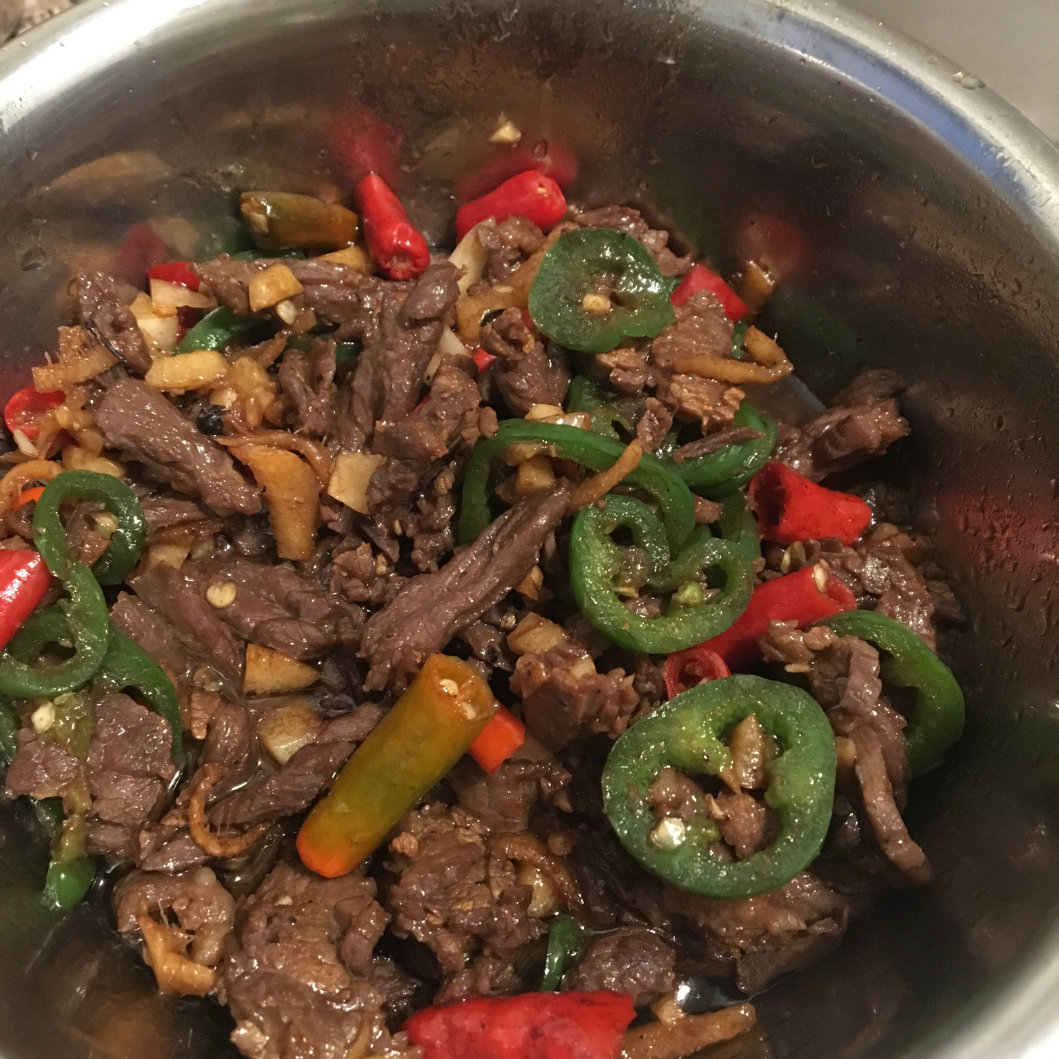 小炒牛肉。好吃。不用放盐的 生抽已经足够了