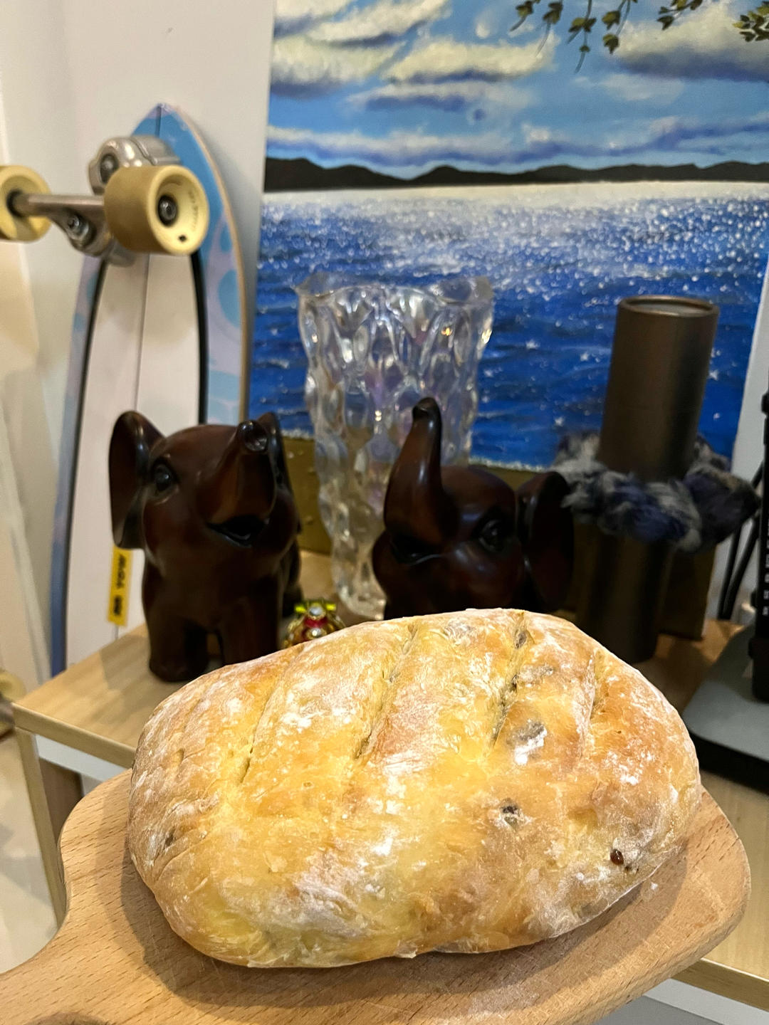 第一次做就成功了,加了坚果碎和葡萄干,特别好吃😋第二天马上又做了一个,嘿嘿