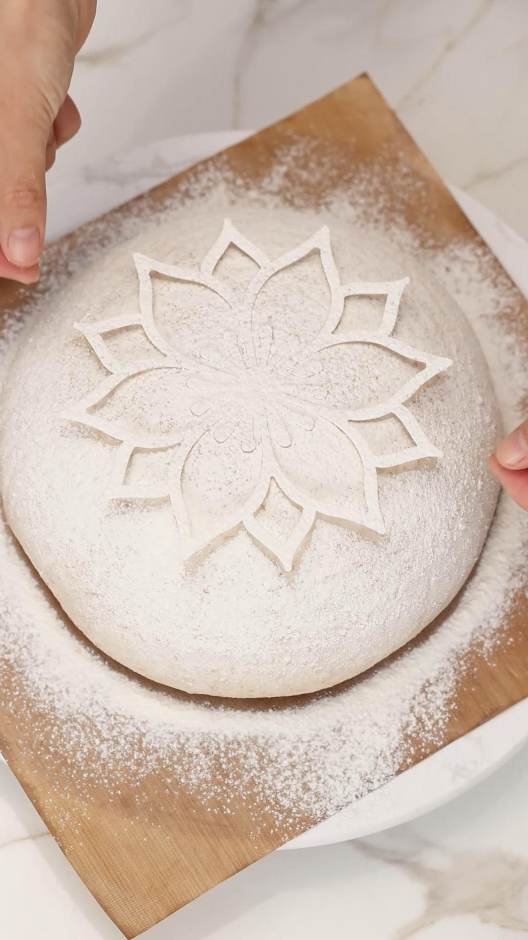欧包割花,善于利用印花模。不必懂复杂技法,一压、一提,加上简单的割刀,让面包瞬间有了专属的仪式感~