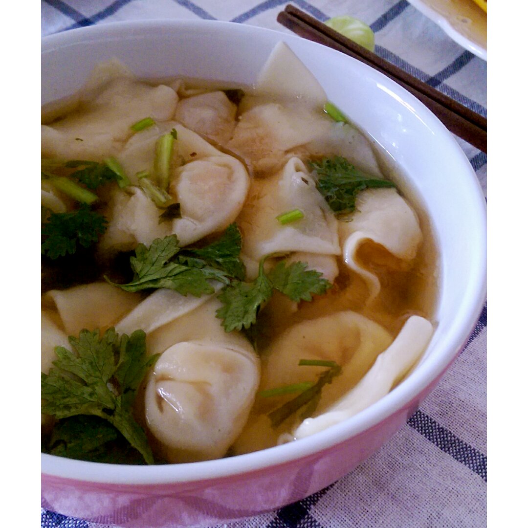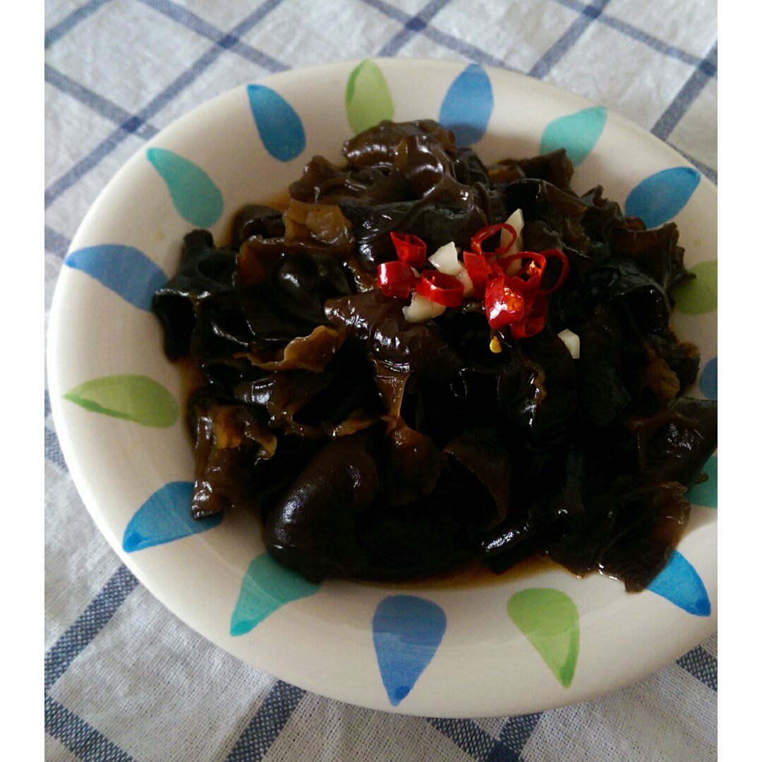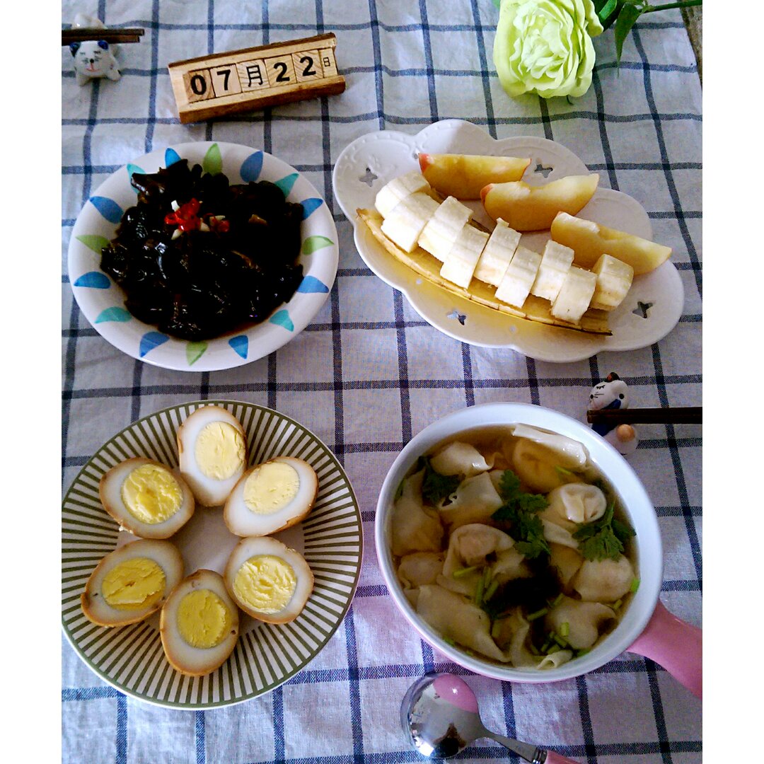 2016.7.22 今日早餐:凉拌黑木耳+猪肉鲜虾馄饨+自制...