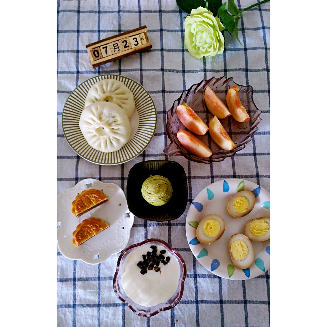 2016.7.23 今日早餐:包子+蛋黄酥+自制卤蛋+酸奶+...