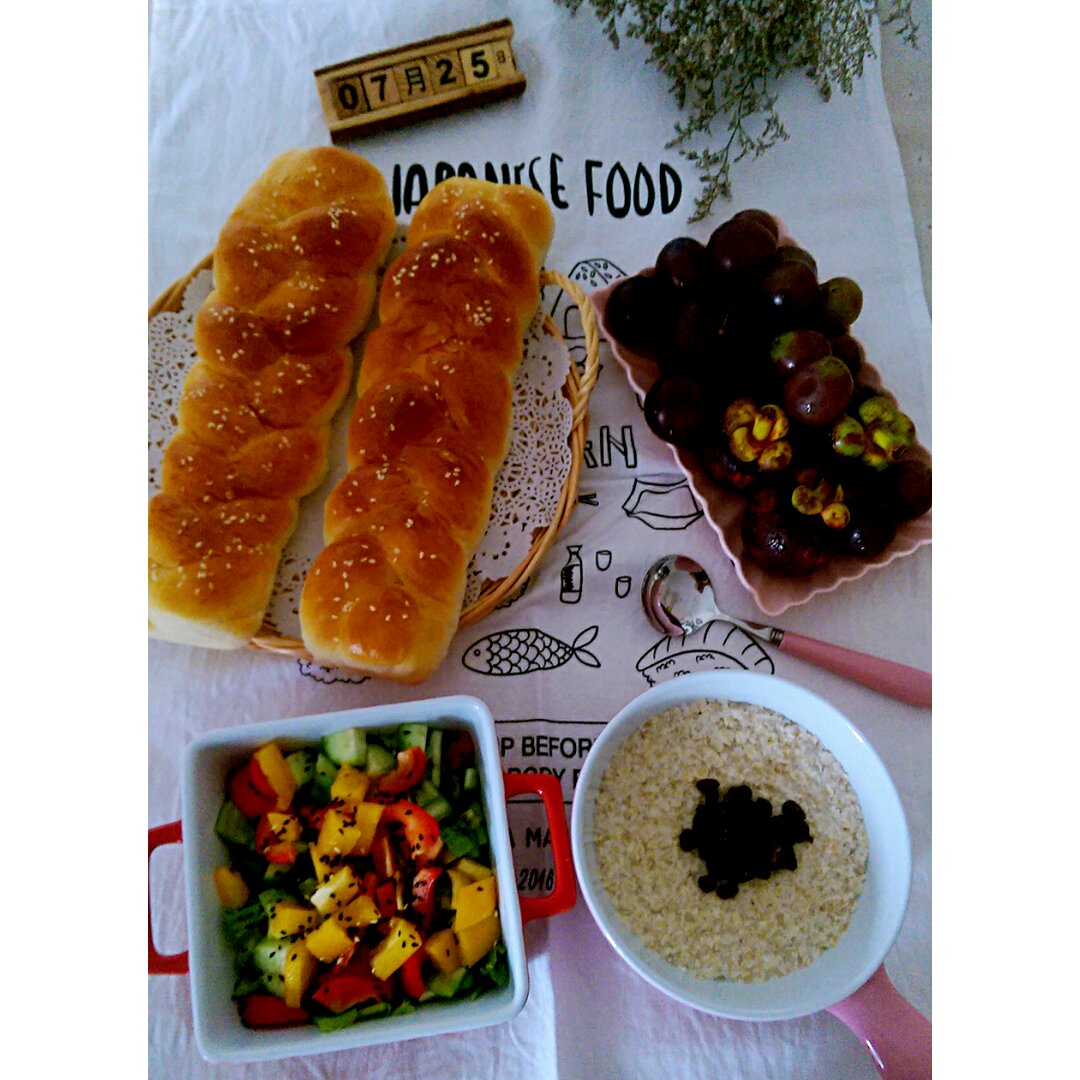 2016.7.25 今日早餐:凉拌菜+辫子面包+红豆燕麦粥+...