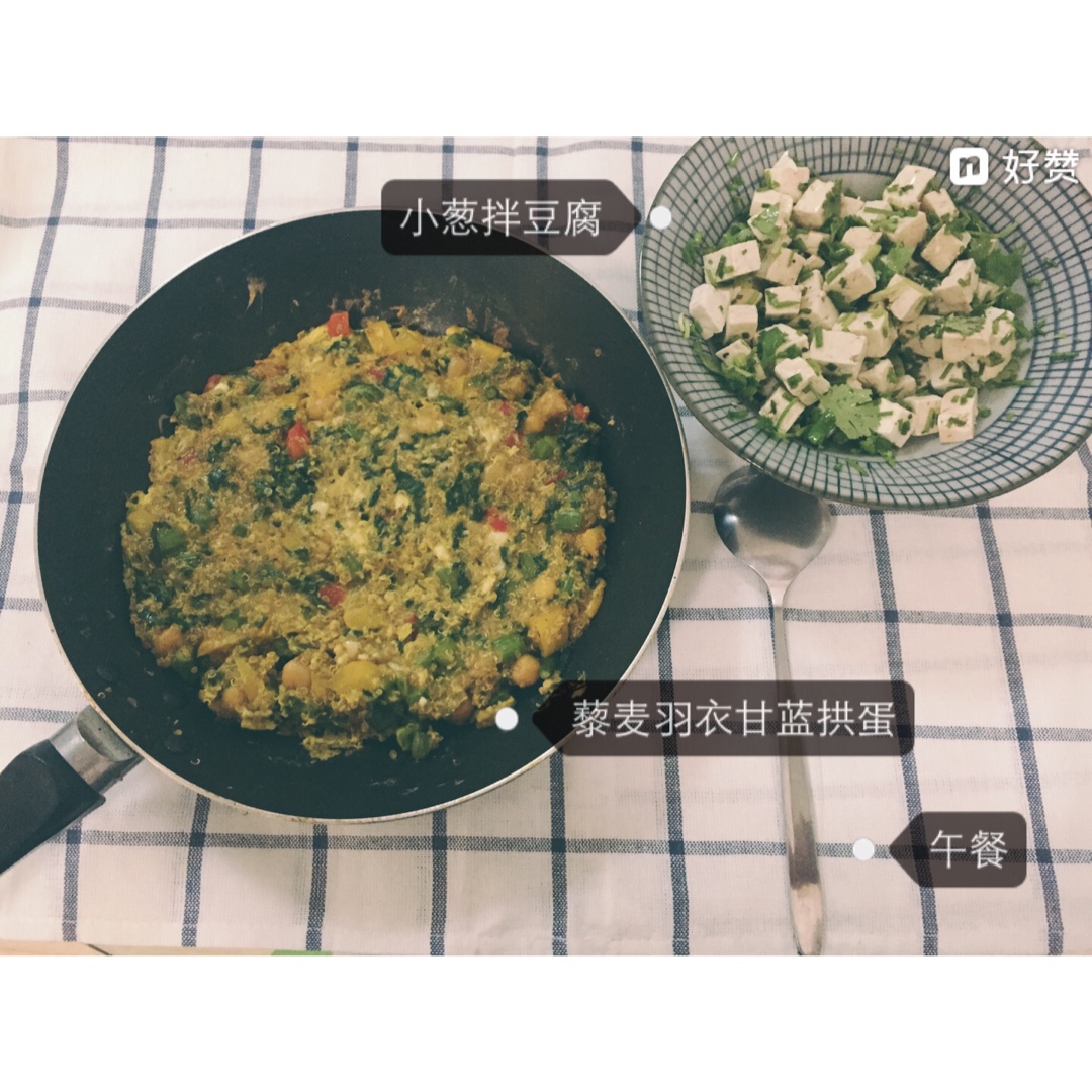 藜麦拱蛋里面还加了鹰嘴豆、咖喱粉~还挺好吃的~