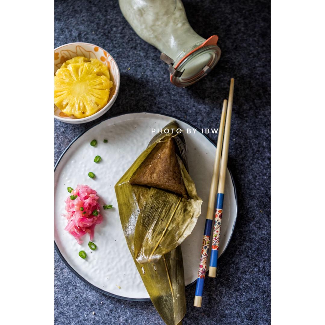 婆婆带了粽叶来。提前包了些粽子。今早煮来吃。非常甜的mini菠萝。泡菜和米酒。