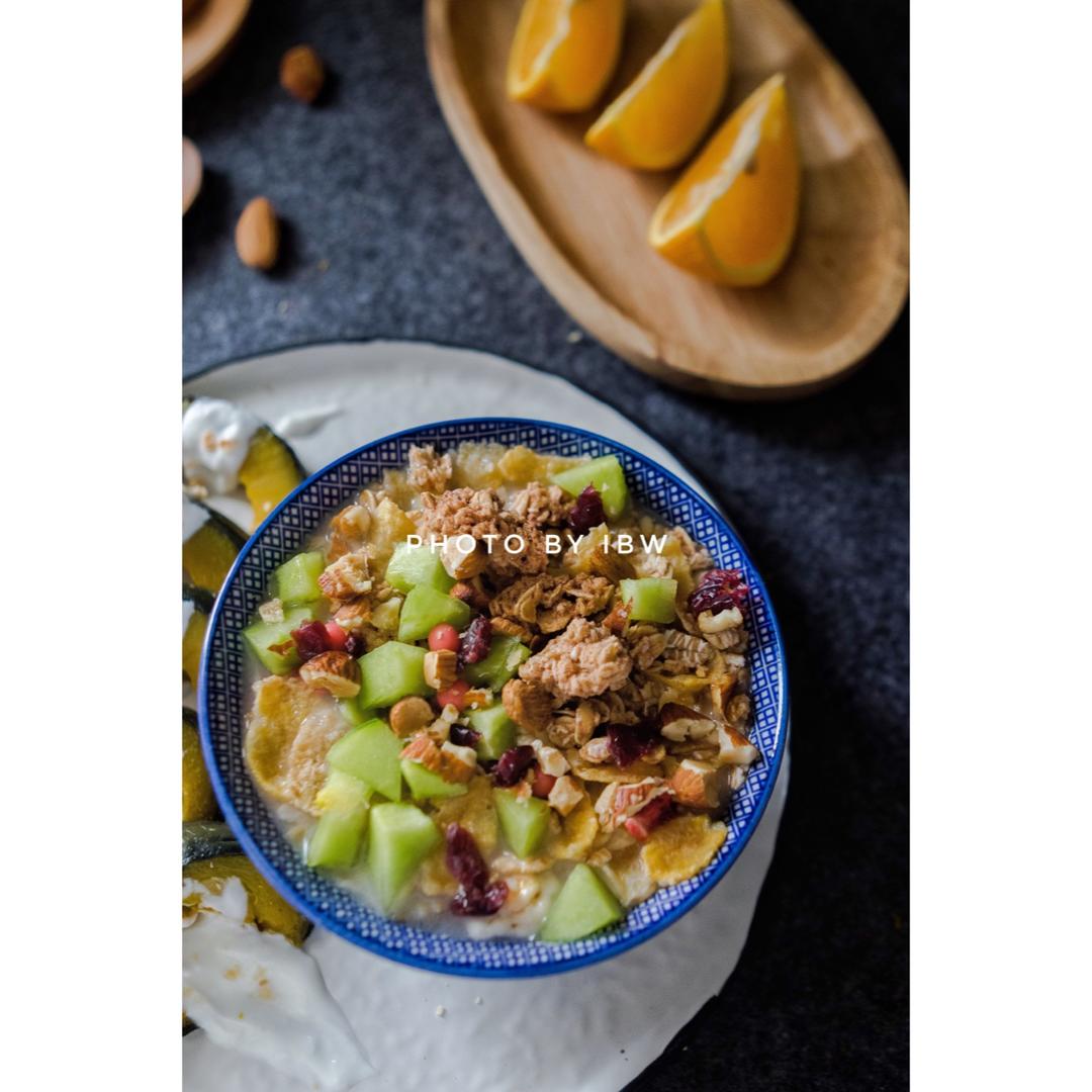 淋一点稠酸奶,一点点坚果碎和脆玉米片碎纸。超爱!