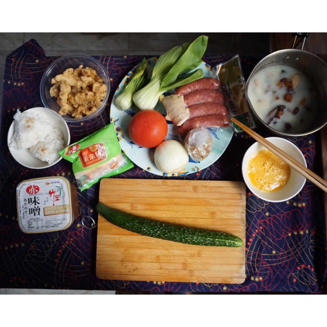 突然想吃一顿有汤有菜有肉的饭,就搜刮了家里所有的东西出来排列组合:快干掉的小白菜和黄瓜、几乎干...