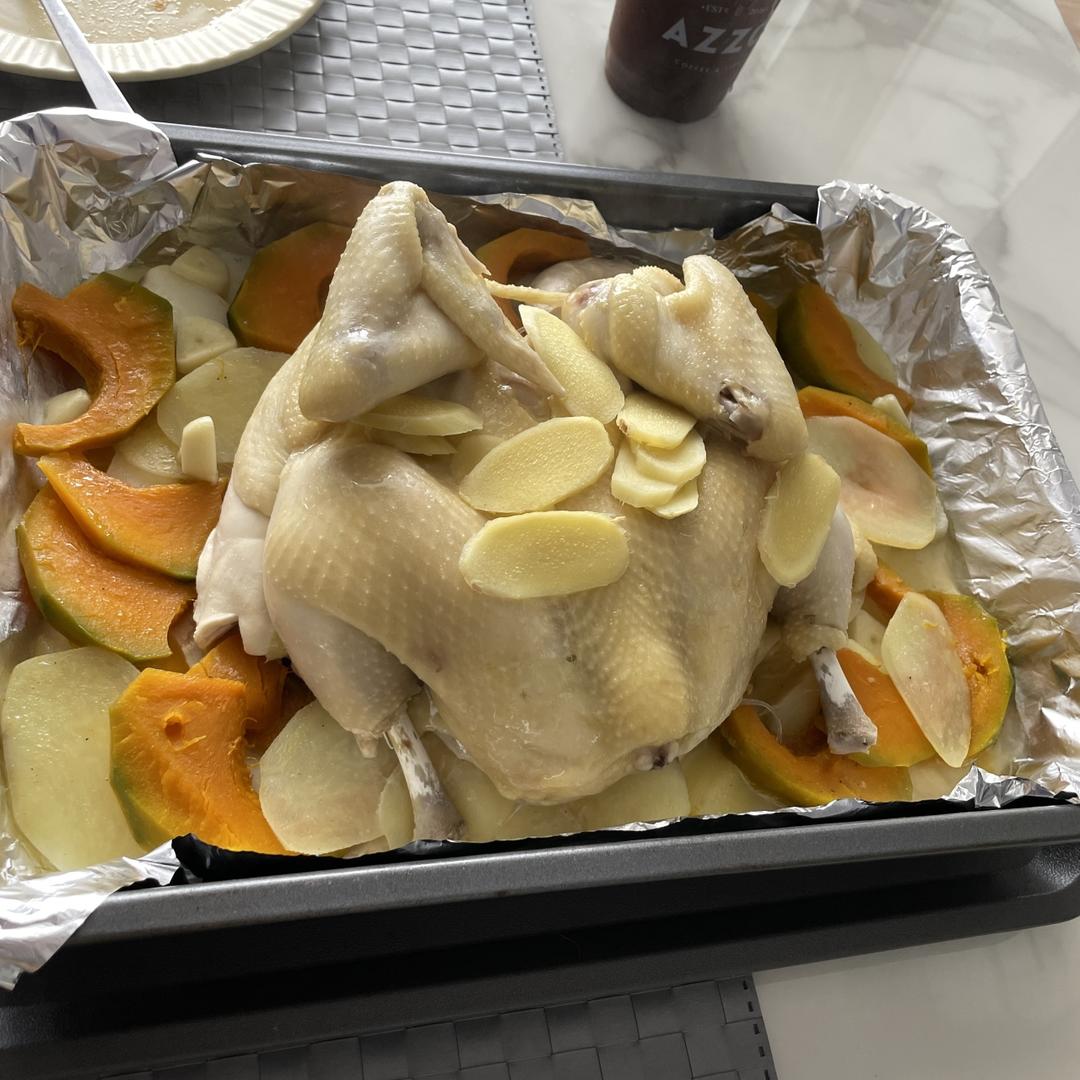 贝贝瓜 土豆 淮山 少少盐橄榄油捞均匀 蒸汽25分钟 鸡前一晚用少量盐腌 吃前清洗干净 用少量花生油帮鸡做个玛莎驰 ...