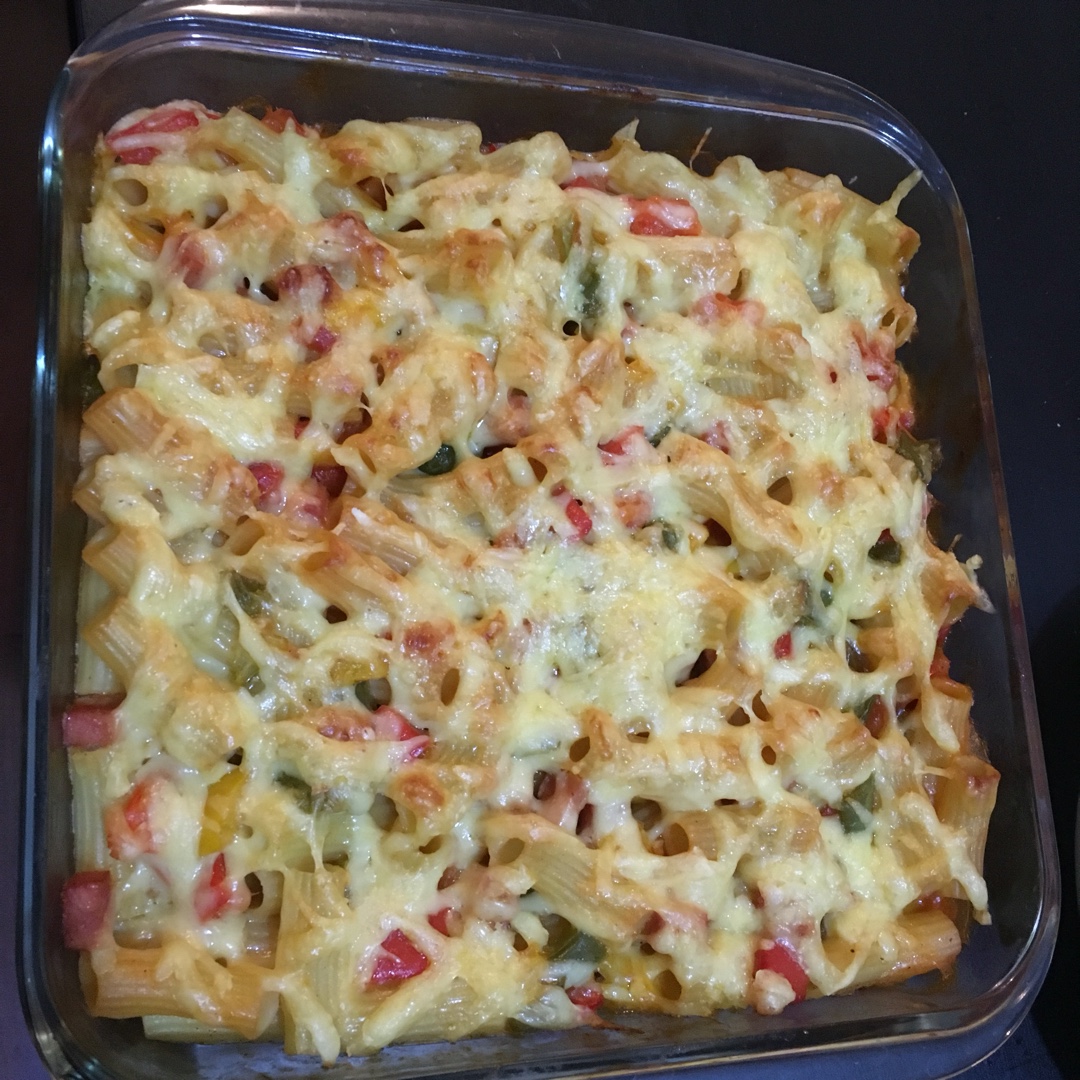 彩椒火腿焗意面(搭配番茄酱口味)
