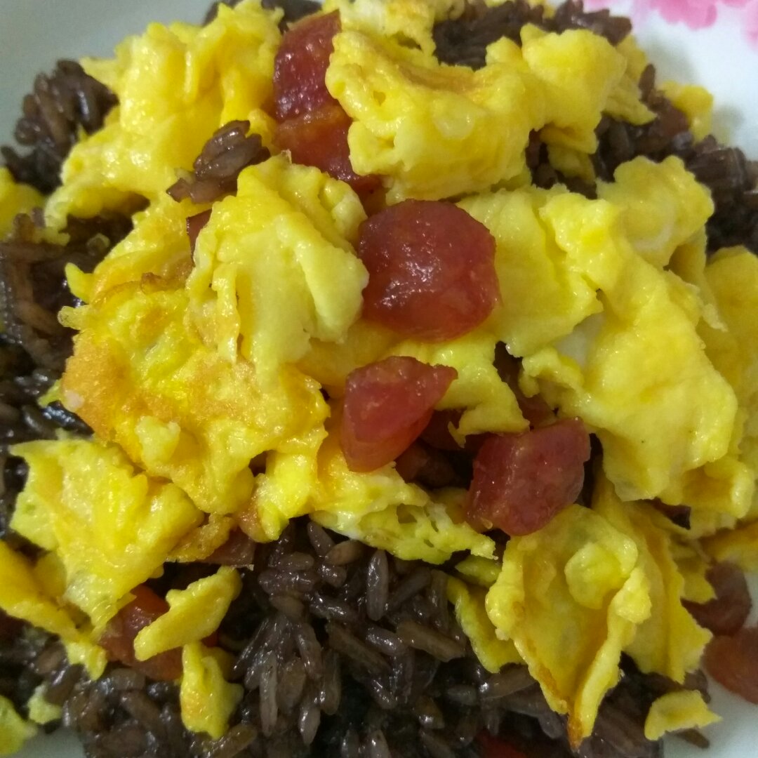 腊肠蛋炒糯米饭。听哥的话味道不错😊