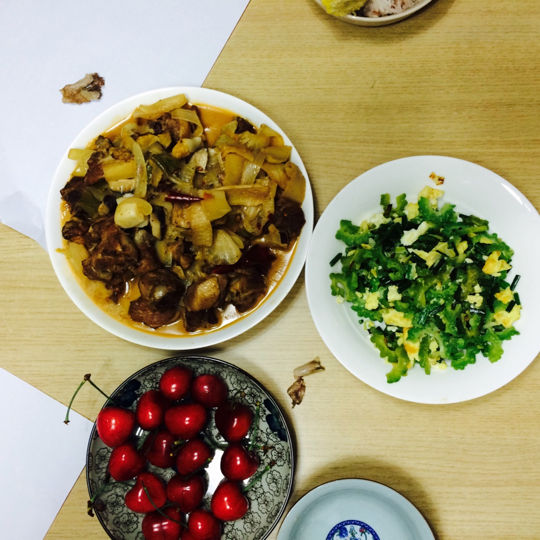 酸菜啤酒鸭,苦瓜韭薹鸡蛋,红米糙米饭。本来打算做啤酒鸭,打开冰箱发现一袋酸菜,就用酸菜代替西红柿啦,居然很好吃。 #晚餐...