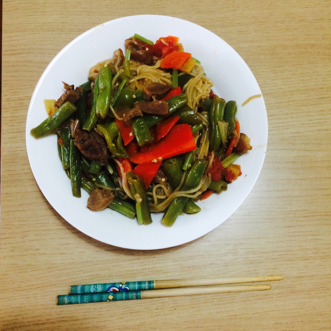 周日很热,孩子去游泳,走之前说想吃西红柿拌面。西红柿鸡蛋柿子椒,韭薹花菇茄子炒瘦肉。面快煮好的时候把洗好的菜心放进煮到断...