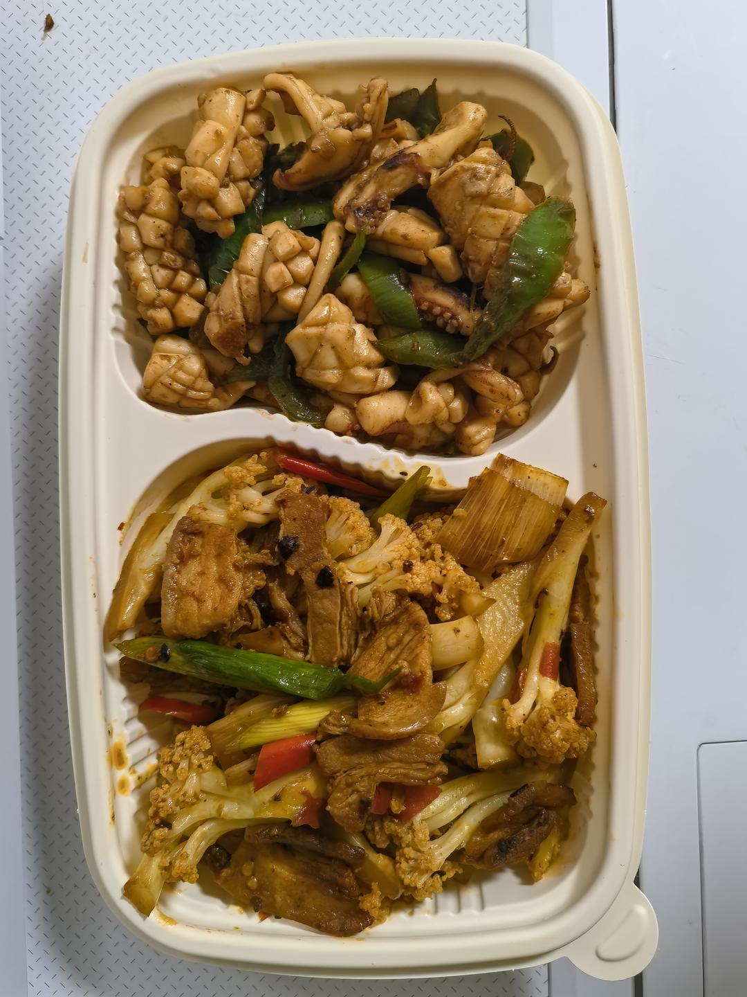 青椒炒鱿鱼,干锅花菜