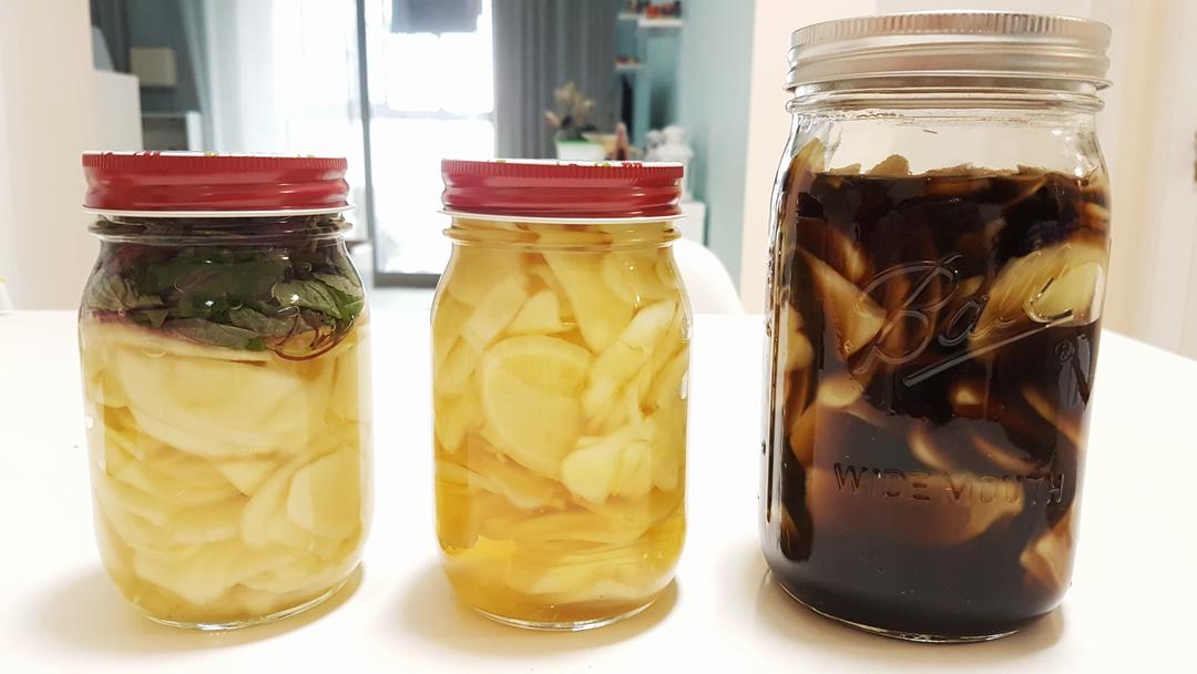 昨晚泡了蒜,醋水煮多了直接拿来泡...