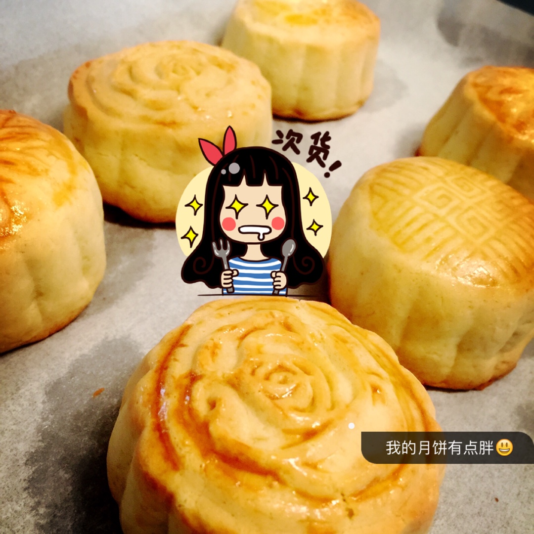 进烤箱前还美美的,十几分钟出来就挤身微胖界,这速度😄 第一次尝试做月饼,不算太满意,奶油皮配比还需改善⛽️ #午餐•20...