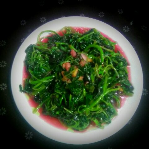 菠菜面,清炒番薯叶和红枣鸡汤