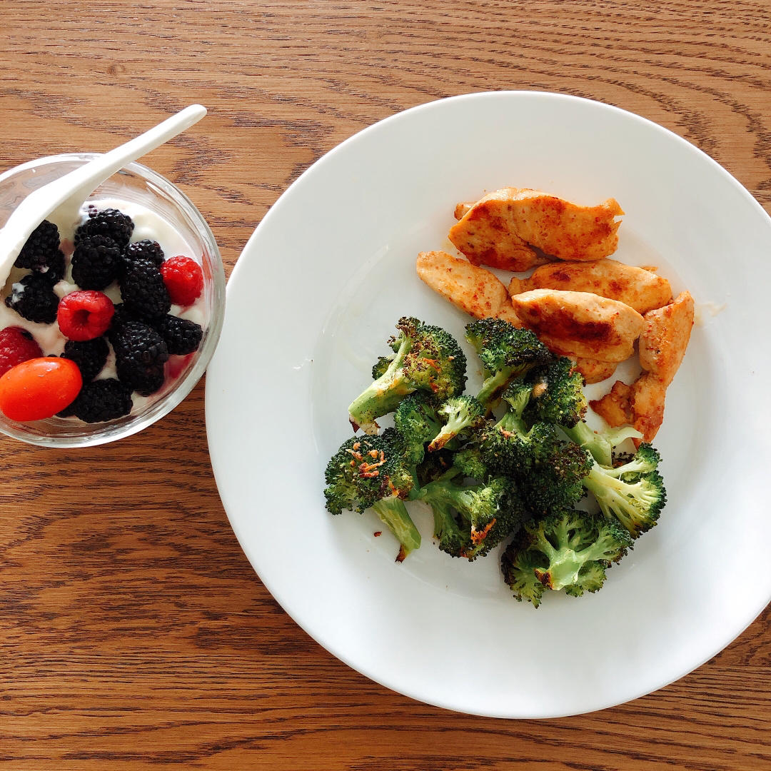 煎鸡胸+烤西兰花+黑梅酸奶