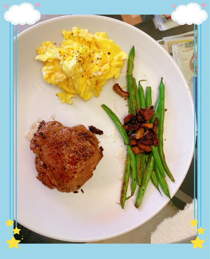 滑蛋+牛油果贝果半个+美式,预估400大卡的完美早餐