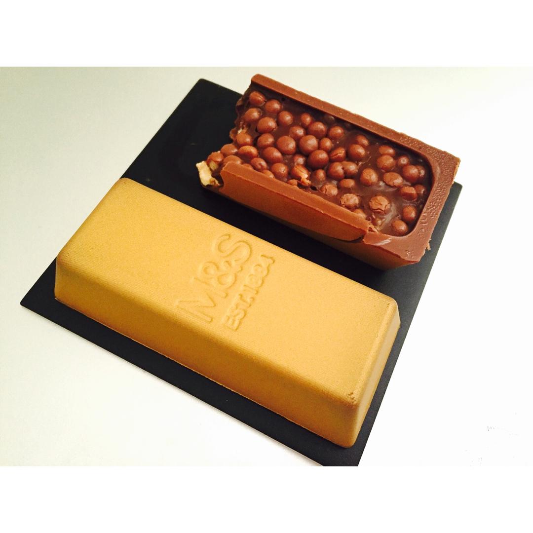 玛莎的一款巧克力金砖!外壳是硬的中间是软软巧克力,然后里头还有小颗的巧克力球球!一口咬下去超级满足der(右滑右滑)虽然...