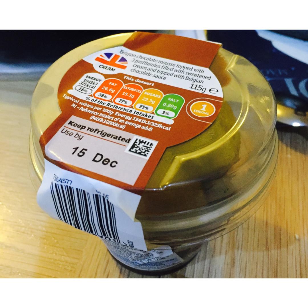 Sainsbury的甜点我很少买,这个算是觉得蛮不错的!一盒里面三个奶油泡芙,底层铺了巧克力慕斯,泡芙顶上浇了巧克力,可...