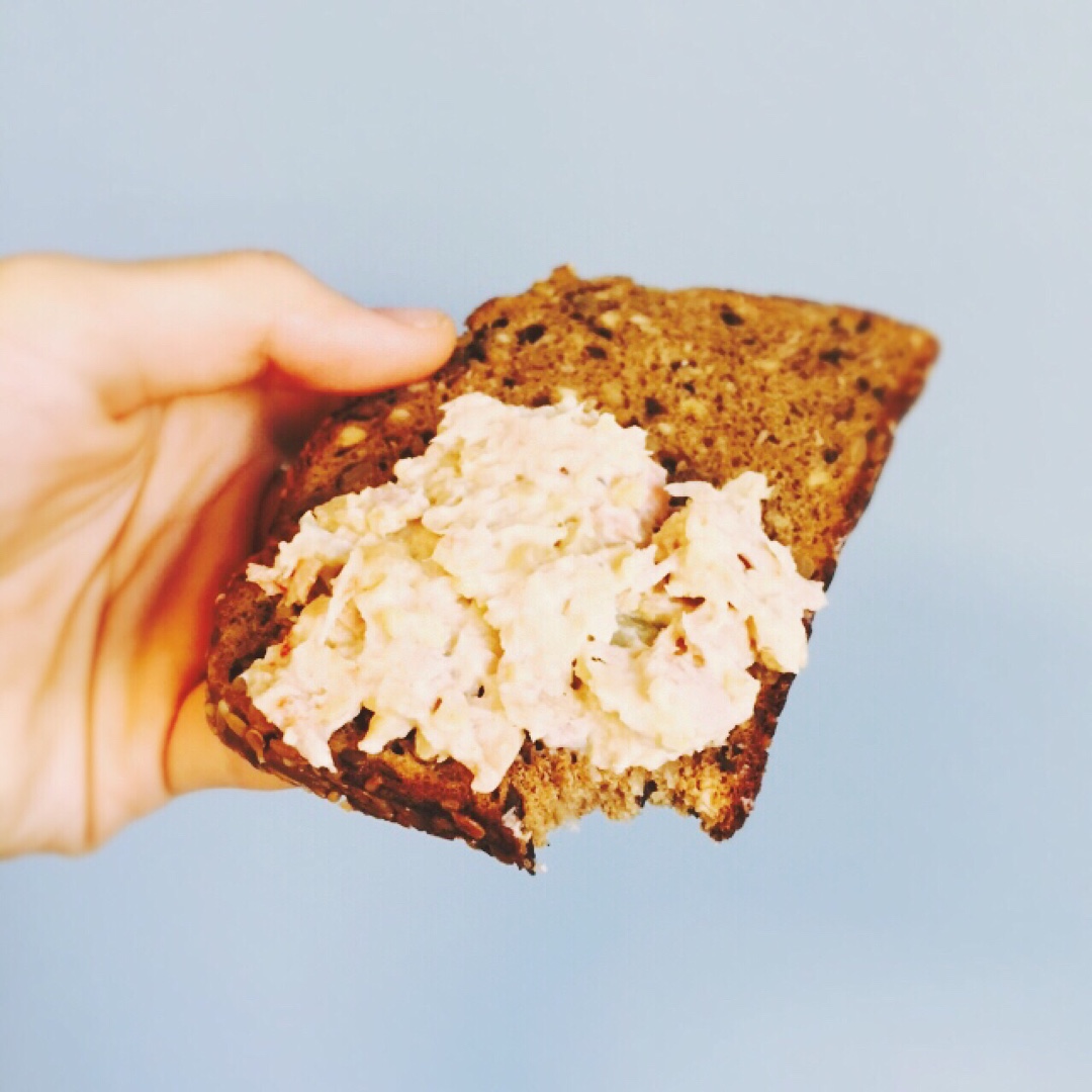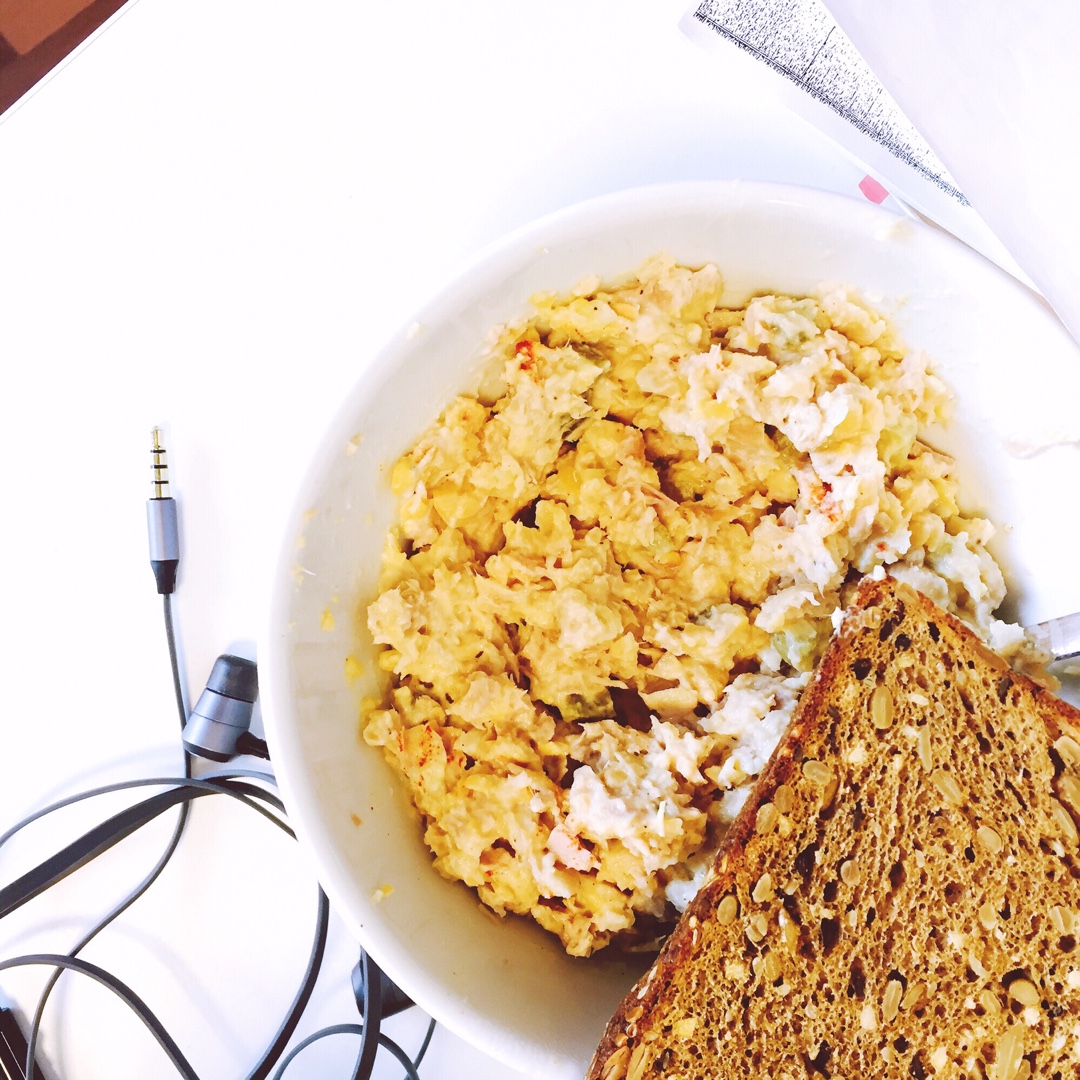 前一天晚上prep好的酱 早上拿出来抹english muffin吃 其实已经很不正宗了😝 加了金枪鱼和鸡蛋 为了蛋白质...